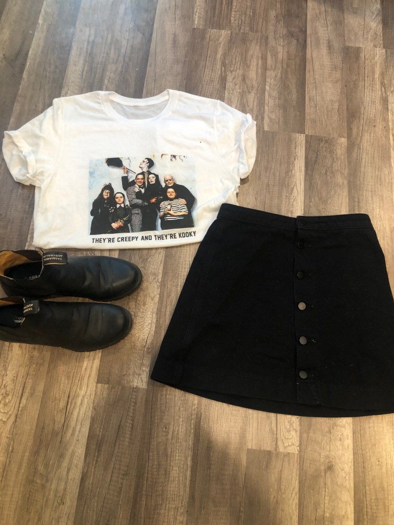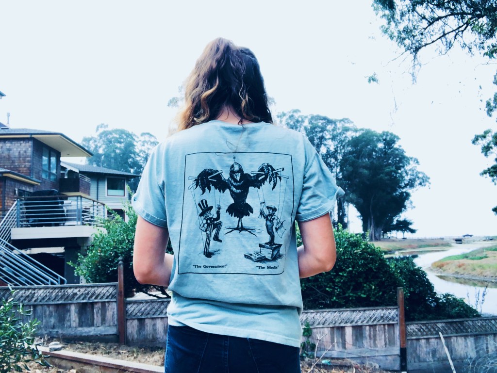 By all means, one of my favorite shirts ever. The material is soft and comfy, the graphic is bold and clear, and it alludes to the idea that I potentially drink beer (which is a big no). This Dilly Dilly shirt cost $3 at goodwill, the leggings are from everlane, and the birkenstocks are one of three pairs of shoes I wear regularly. Another Goodwill find! This construction shirt is very oversized, but I love a good front pocket t shirt. I spent $5 on this comfy staple that pairs well with skinny jeans and my blundstones.I think I have an obsession with BirdsArentReal.com. Their shirts are beyond comfortable and comical. For $25, I feel like the quality level is a steal!My Che Shirt that I purchased in the airport in Cuba. This shirt replaced a different Che shirt that went missing on my study abroad adventure, but it still holds a special place in my heart. My Santa Cruz t-shirt that proves I am local while also proving that I am cool (?). I bought this shirt from Santa Cruz Boardroom over on 41st and cropped it myself. A Poshmark find! This hilarious shirt was $20, and honestly, I love wearing it on days when I give no fucks. It is so obnoxious and always makes me laugh.I love all things Addams Family. This cute and comfy t shirt from Pink Arrow Boutique was $40, but with their coupon code of Pumpkin20, you can get 20% off. I love their graphic tees and will def be buying more ASAP.Another Goodwill find! I love this shirt and anyone who has seen me in the last three years has seen me wear this shirt everywhere. I bought this beauty for $3 and it was so so so worth it! Have I ever been to the Rocky Mountains? Absolutely not. But this shirt is so damn comfortable that I might make a trip for more!Another BirdsArentReal.com Tee! So comfortable, so cute, and the color… It is the perfect shirt for me. It calls out government control while also displaying a fun graphic that brings people’s attention to my humor :). This shirt was $25, and I have zero regrets.